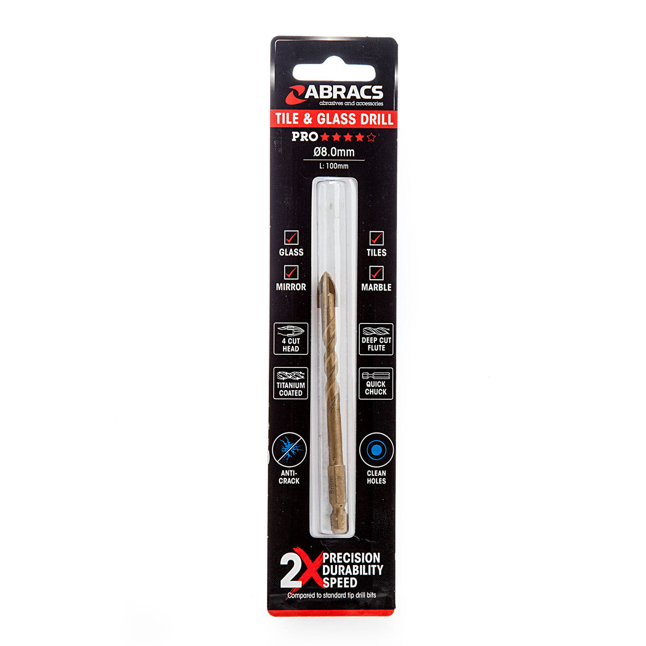 Abracs 4 Point Drill Bit Tile Glass 8mm Titanium Coated 1/4" Hex Shank DBG080