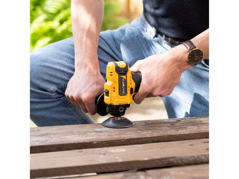 The Batavia FIXXPACK Sander/Polisher is ideal for different polishing and sanding jobs on smaller surfaces, for example removing old layers of paint and polishing car parts. Its easy to change the pads/paper thanks to a Velcro strap connection.