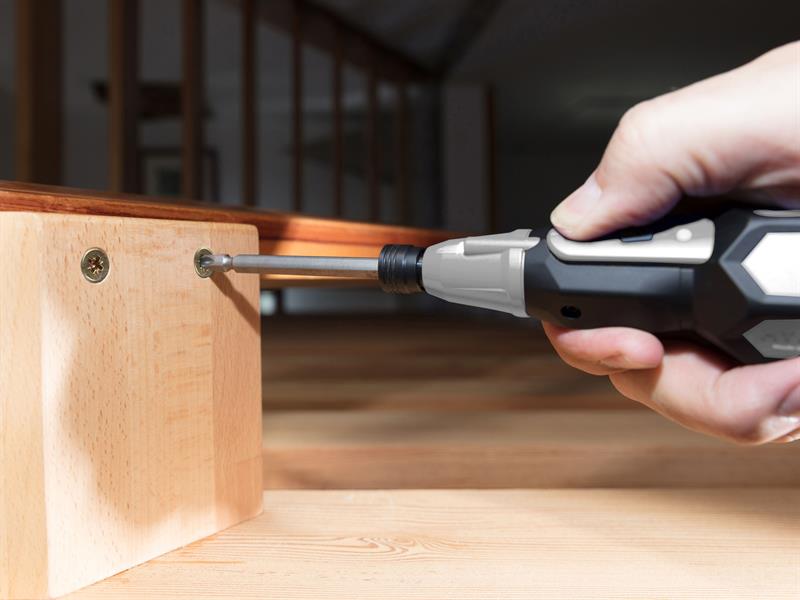 The Batavia Compact Grip Screwdriver can be used as an automatic or manual screwdriver. Thanks to the 3.6V Li-ion battery, you can automatically fasten screws easily and quickly. The Compact Grip is easily charged through a USB cable (included). It is fully charged in 1-2 hours. The maximum torque of this tool is 2 Nm in automatic mode and 10 Nm in manual mode. Fitted with a quick release chuck that accepts standard screwdriver bits.