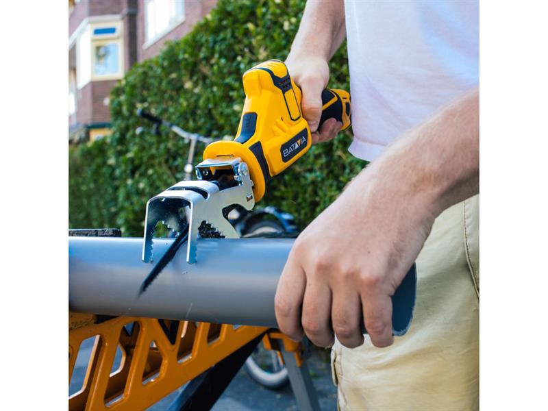 Batavia FIXXPACK Reciprocating Saw with a variable stroke rate, which makes it the perfect tool for every situation. Its compact, light weight design is easy to handle and reduces the risk of fatique. Blade change is quick and easy, without the need for extra tools.