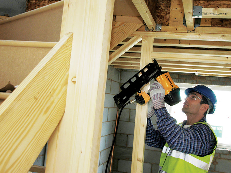 The handle has been lowered to improve balance and comfort in use; along with other design improvements these features will keep this tool firmly at no 1 in the pneumatic framing market. Its use of 28 degree wire collated nails keeps consumable costs to a minimum.
