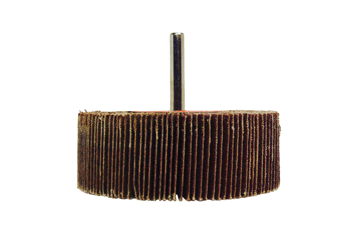 - Heavy duty abrasive cloth flap wheels with 6mm spindle.