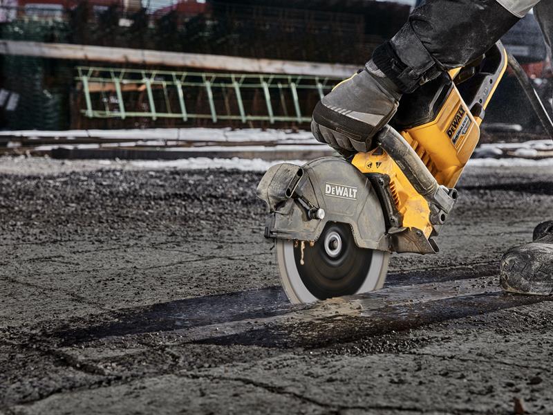 The DEWALT ELITE SERIES™ Asphalt Diamond Segmented Wheel made with laser welded, drop segments provide a stronger bond for up to 5X longer* life cutting hard materials.