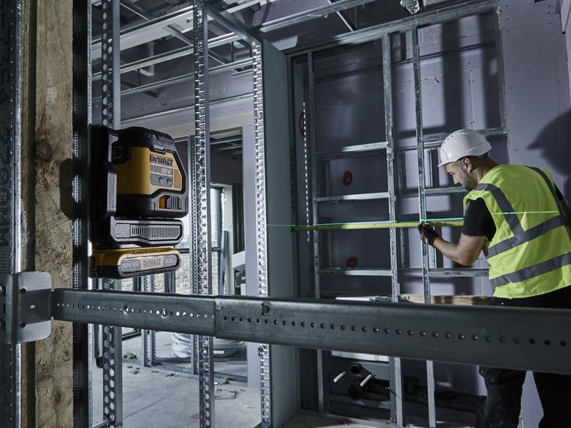The DEWALT DCLE34021 XR Compact Cross Line Green Laser delivers an impressive 55 metre working range. Class-leading green beam technology provides outstanding visibility, even in the toughest job site environment.