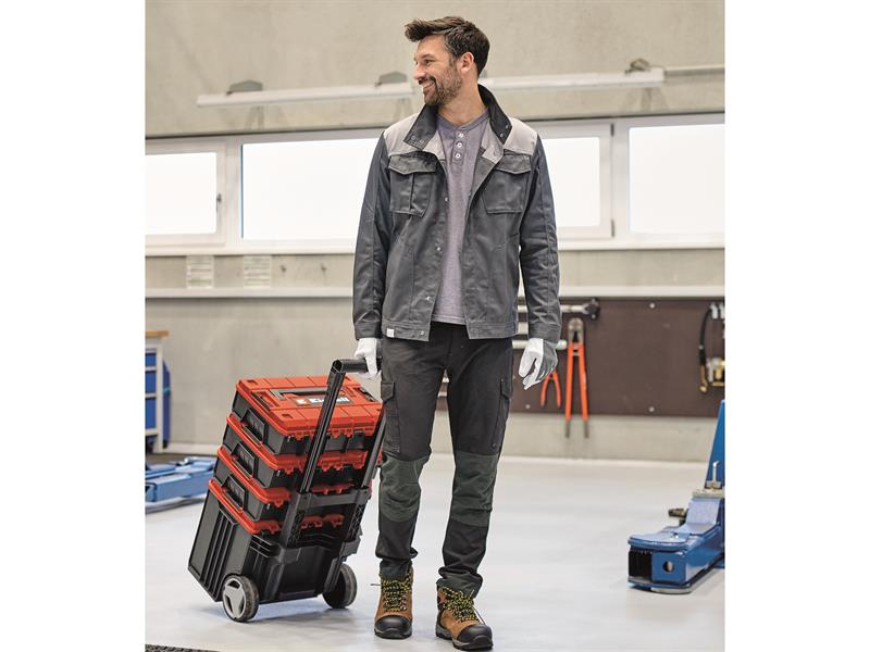 The Einhell E-Case L is a member of Einhell's modular E-Case system and is ideally suited for storing and transporting machines, tools, accessories and other equipment. A practical locking system for connecting stacked cases ensures systematic order during storage and enables safe transport.