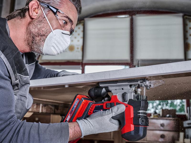 The integrated softstart ensures high levels of safety and protects the motor. Equipped with speed electronics, making it possible to work perfectly matched to the material and application. Thanks to its high running smoothness, the cordless jigsaw ensures precise cuts. For fast cuts, the pendulum stroke can be switched on. The sturdy aluminium base plate ensures exact cutting angles. A plastic sliding insert protects particularly sensitive workpieces and the anti-splintering protection ensures tear-free cuts.