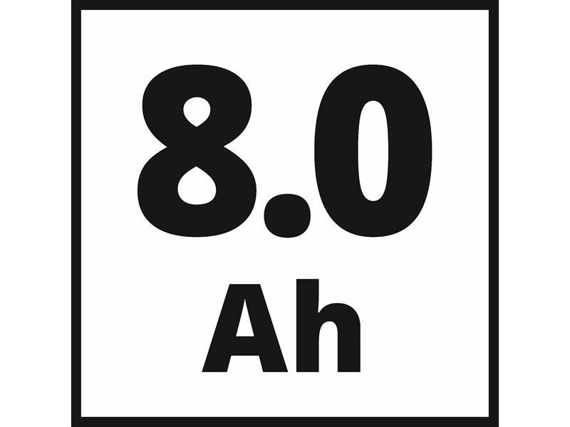 The Einhell Multi-Ah Power X-Change Battery can be operated as an 8.0Ah battery for maximum runtime or as a 5.0Ah battery for a 3x longer total service life. The latest generation of lithium-ion cells provides 100% more power for maximum performance in all applications, with a 13% more compact design and 12% weight reduction. PLUS technology also means extra power for intensive work. In addition, the high-quality battery resists the memory effect and the self-discharge which usually occurs in batteries for constant, high power.