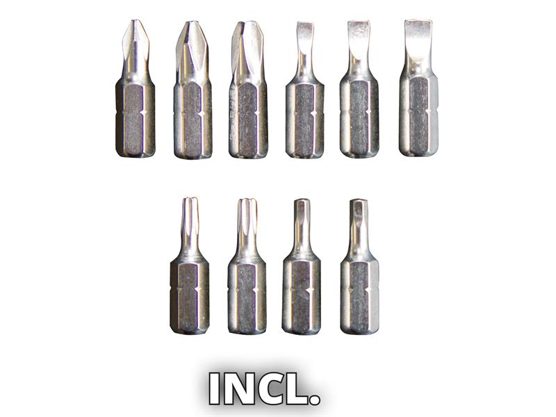 Supplied with: 1 x Set of 10 Bits, 1 x 3.6V 1500mAh Rechargeable Battery, 1 x Micro USB Charger