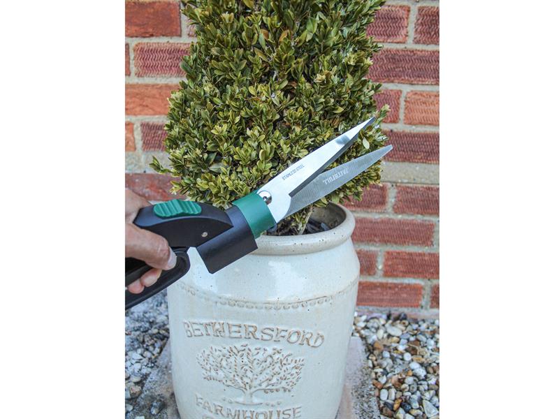 Faithfull Countryman One Handed Shears feature a 360° swivel head that allows 7 different cutting positions. They are ideal for trimming lawn edges and cutting grass and undergrowth in tight places where a mower can't reach. The shears feature a comfortable soft-grip handle with a thumb lock to keep the blades safely closed when not in use and corrosion resistant stainless steel blades.