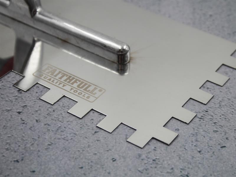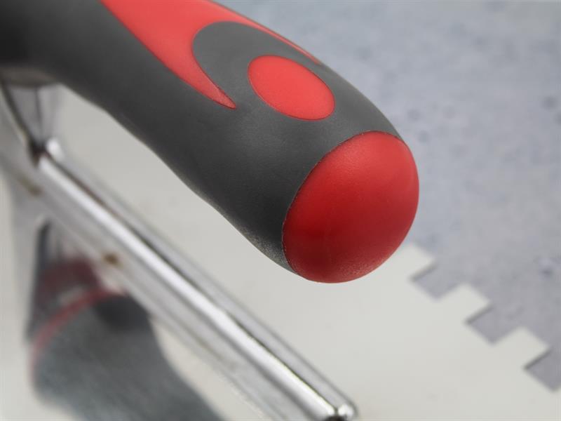 Notched trowel specifically designed for the application of adhesive prior to the setting of wall or floor tiles. High quality stainless steel blade for durability and a long working life. Fitted with a full size soft grip handle for user comfort.