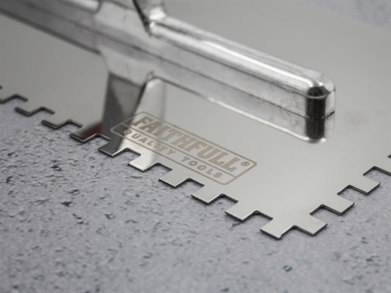 Faithfull Notched Trowel Serrated 6mm Stainless Steel Soft Grip Handle 11 x 4.1/2in FAISGTNOT6SS