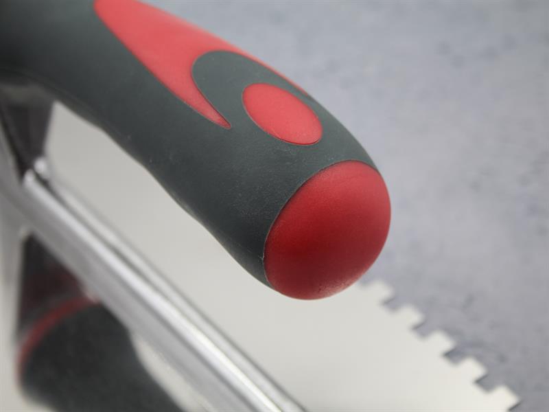 Notched trowel specifically designed for the application of adhesive prior to the setting of wall or floor tiles. High quality stainless steel blade for durability and a long working life. Fitted with a full size soft grip handle for user comfort.