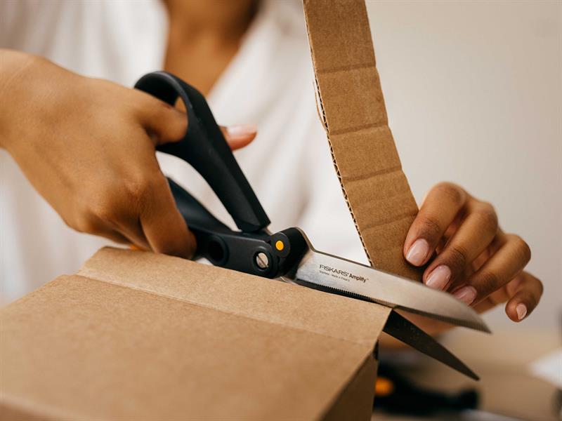 The Fiskars Amplify Scissors feature premium-grade, stainless steel blades with a precisely-honed edge to stay sharp and cut cleanly, all the way to the tip. These high quality stainless steel blades hold their sharp edge longer.