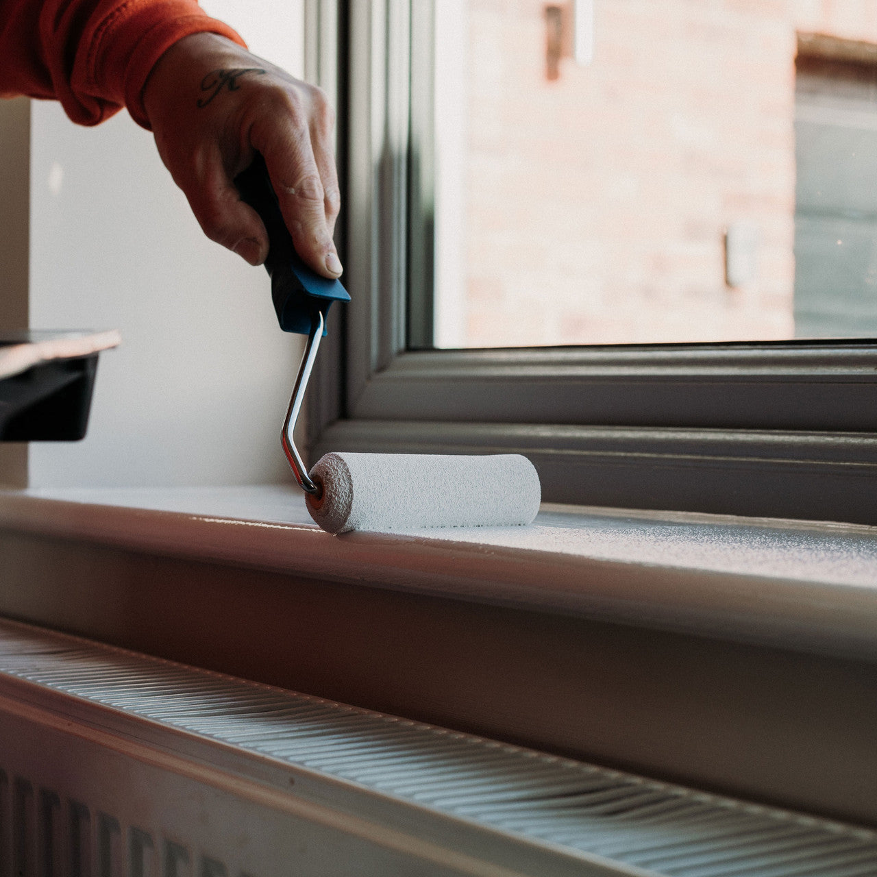 Before using any new fabric roller sleeve, dampen the hand and run it over the sleeve to remove any excess or loose lint. Foam sleeves will not need this pre-use. After use, remove excess paint and rinse well with clean water and stand on end to dry. Results will depend on the paint used.