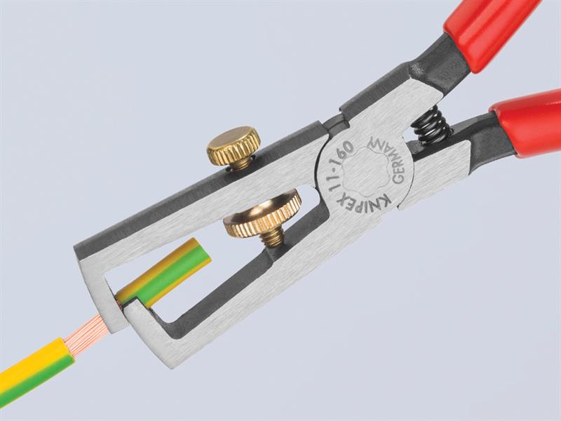 The wire strippers feature an adjustable screw for setting the desired diameter of wire to be stripped. This can be any wire diameters up to a maximum of 5mm or 10mm2 cable cross section.