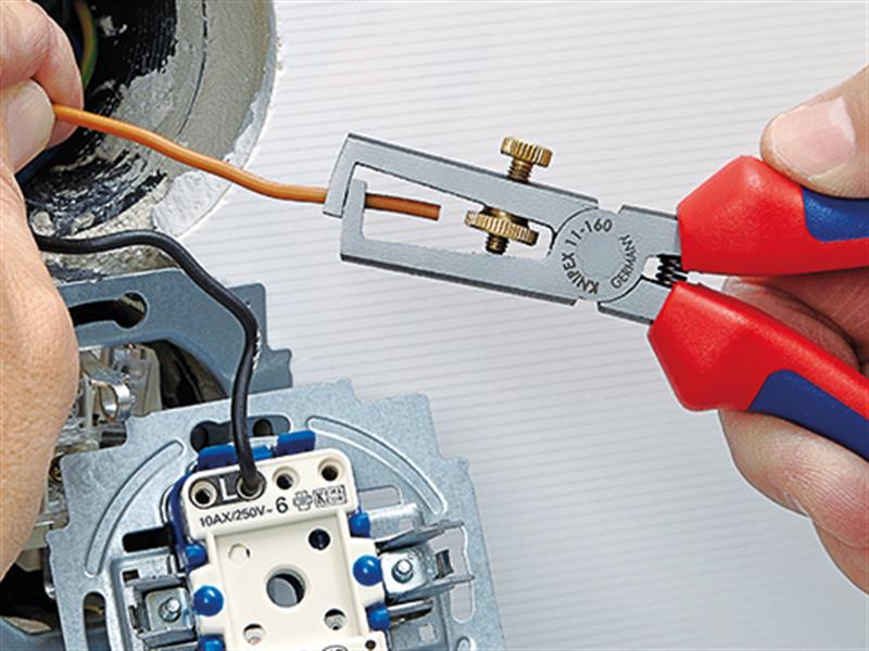 The wire strippers feature an adjustable screw for setting the desired diameter of wire to be stripped. This can be any wire diameters up to a maximum of 5mm or 10mm2 cable cross section.