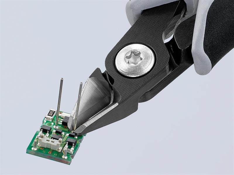Knipex Series 79 ESD Precision Electronics Side Cutters are fitted with electrically discharging handles (dissipative). They provide an optimised flush cutting result in soft materials and are perfect for installations with tight tolerances and for precise configuration of wire ends. These pliers are 20% lighter than conventional electronics pliers and are fitted with ergonomically optimised multi-component handles.