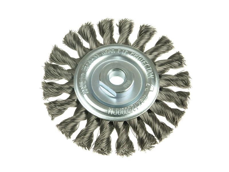 Lessmann Knot Wheel Brush 115 x 14mm 22.2mm Bore, 0.50 Stainless Steel Wire LES472811