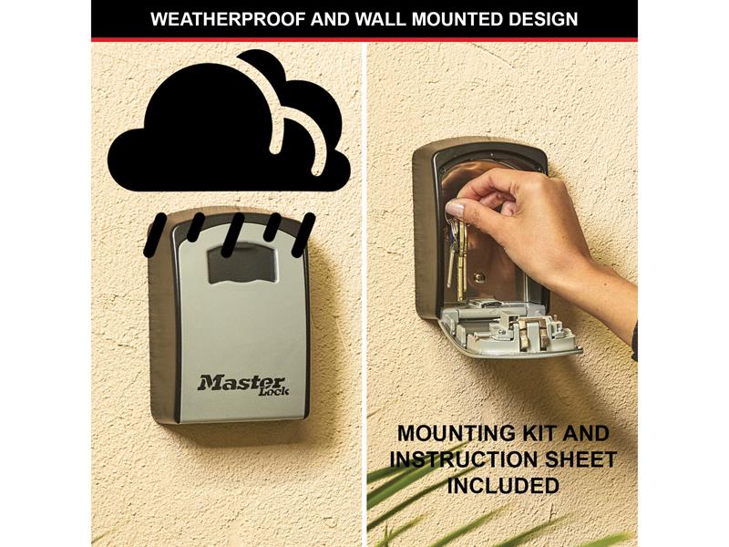 The Master Lock 540 Select Access® Key Safe enables the safe storage of house, car and padlock keys. With a Set-Your-Own 4-digit combination for keyless convenience and increased security. The shutter door protects combination dials from weather, dirt and grime.