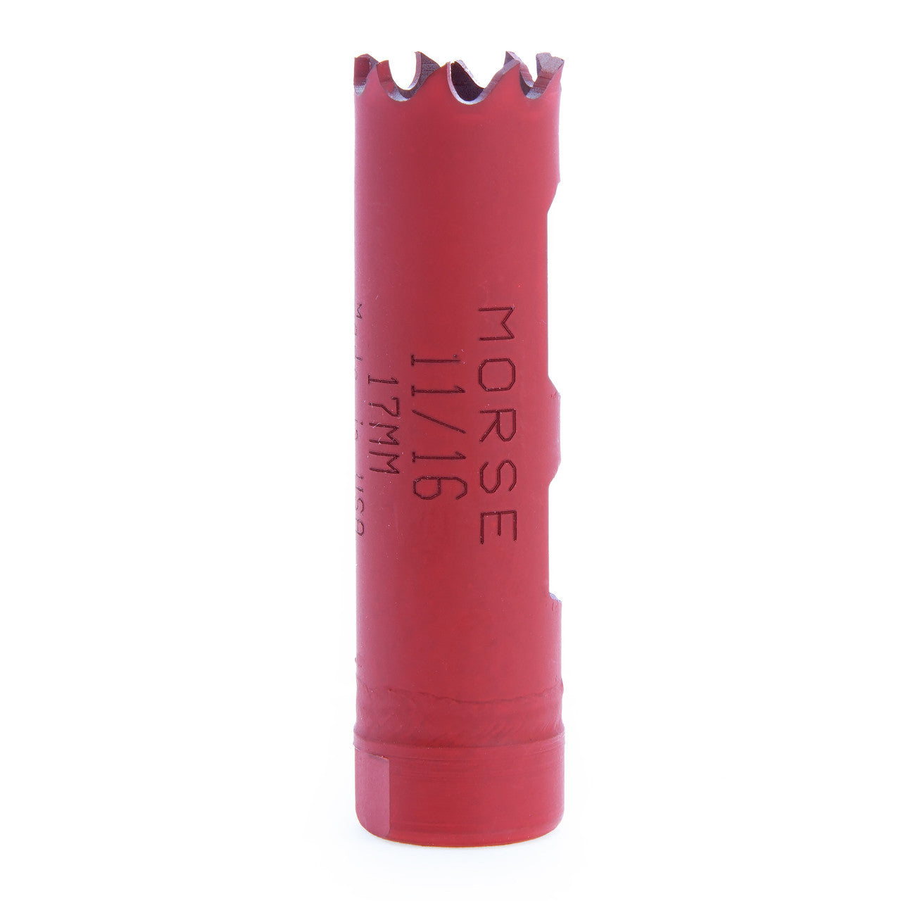 The Morse MHS11 (177115) Bi-Metal Hole Saw has a diameter 11/16in - 17mm. The All-New Advanced Bi-Metal Hole Saw by Morse is their latest sawing innovation, a simple optimized powerhouse. Engineered for optimum cutting performance and longer life. The exceptional durability yields cost per cut savings over other saws. Applications in: Wood, plastic, machinable metals, stainless steel alloys, nail-embedded wood. Sold without Arbor or Pilot Drill. Compatible with Morse MA34 (139014) 3/8in Hex Pin Arbor.