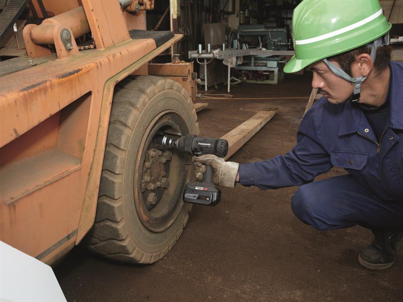 The Panasonic EY7552 1/2in Heavy-Duty Impact Wrench has an improved twin hammer block design which allows for a smaller size and lower weight, but also provides reduced vibration and noise levels, making it a comfortable, hard-working tool. The EY7552 offers approximately 230% higher power with almost 50% less vibration and most compact in the high power class when compared with EY75A2 impact wrench. This also helps to protect against damage to the unit itself where repeated contact with the floor or work station causes wear.