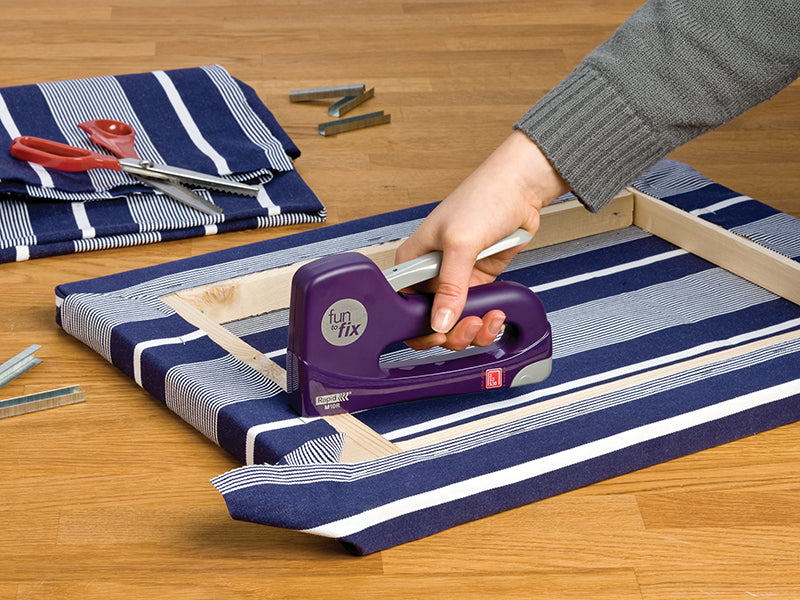 The Rapid M10R Tacker is ideal for lighter decoration and hobby work and fires fine wire staples that are barely visible and have minimal effect on the textile fibres. It is compatible with Rapid No. 53 fine wire staples size 4-8 mm and is recoilless for comfort and long-term use. Covered by a 2-year guarantee. Rapid 'Fun to Fix' tools are ergonomically designed and suitable for smaller hands.