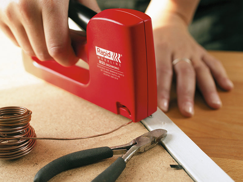 The Rapid R13E and R53E Staple Guns are ideal for hobby and DIY applications. Suitable for home decor, securing textiles, reupholstery and light-duty repair. They fire fine wire staples that are barely visible and have minimal effect on the textile fibres. An easy colour match staple system ensures you have the right size staple.