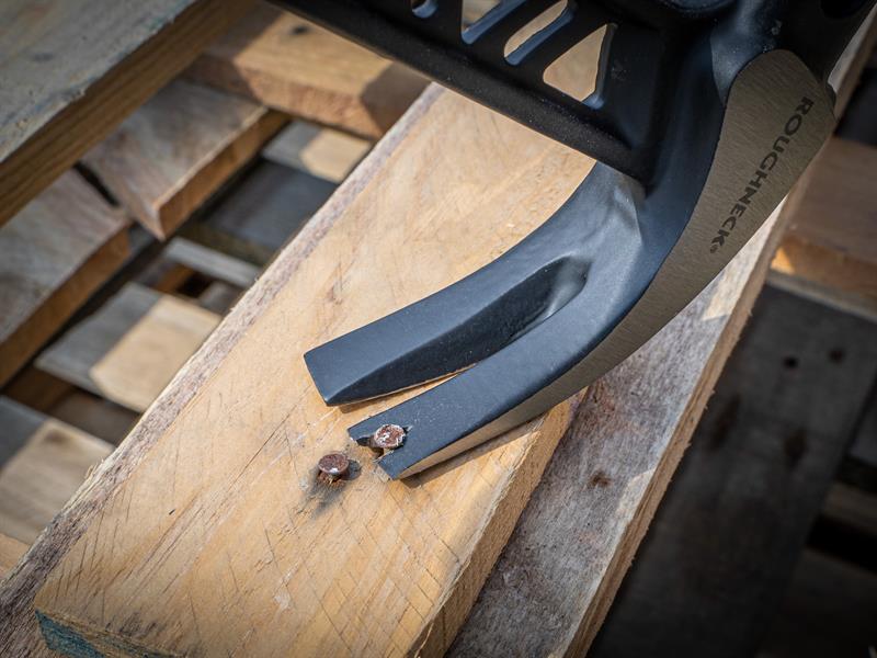 Reduced weight in the shaft transfers the centre of gravity towards the head, resulting in improved balance and reduced effort. The magnetic nail holder makes for effortless starting, particularly in hard-to-reach areas, whilst the mini-claw allows for embedded nails to be removed with ease. There is a lanyard hole in the base of the handle, ideal for safe and secure tethering when working at height.