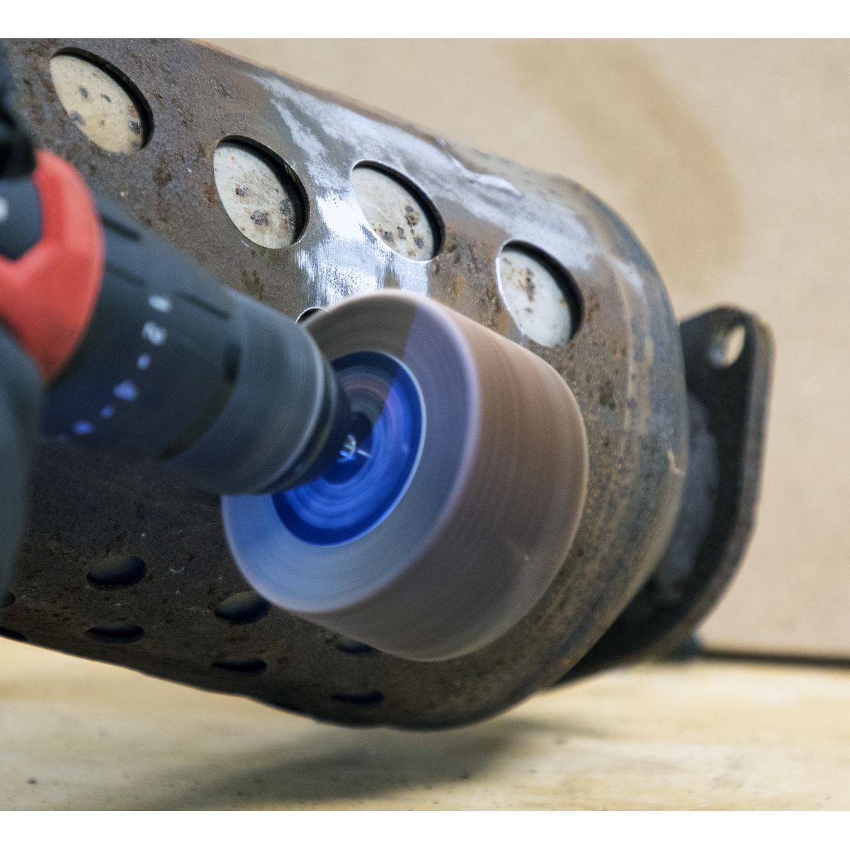 Aluminium oxide abrasive flap wheel ideal for finishing curved and intricate metal surfaces. Supplied in pack of 5.