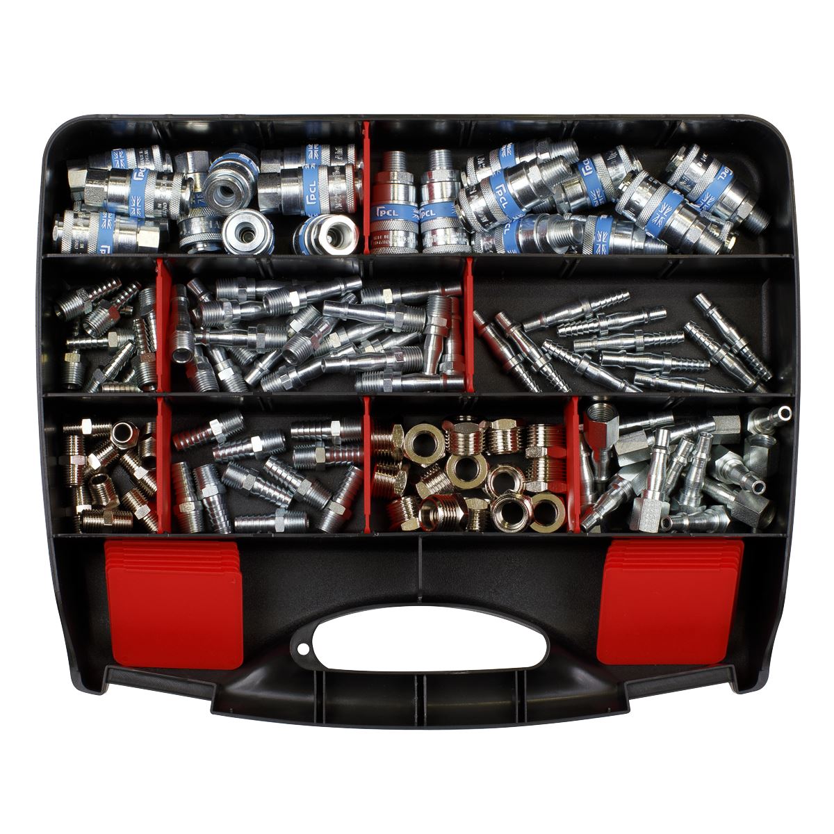 Contains a popular selection of air line couplings, hose connections and adaptors. Ideal for air supply system maintenance and service engineers, as well as van and countertop sales. Supplied in a storage case.