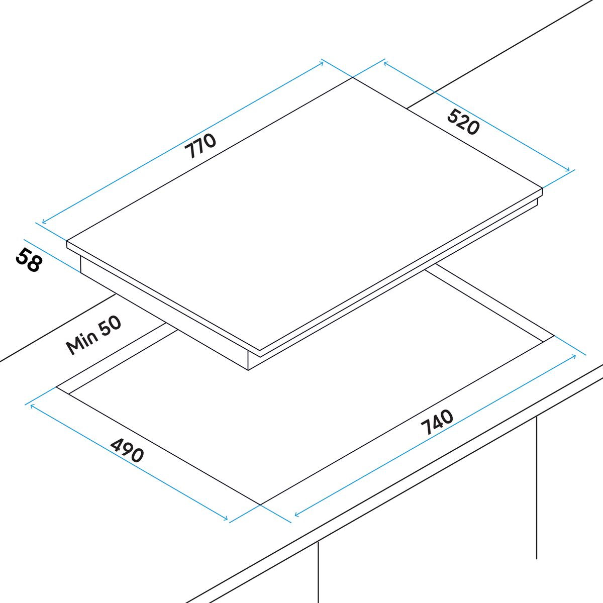DIMENSIONS (W x D x H) - 77 x 52 x 6cm. *Not supplied with a mains plug, this hob must be hard-wired.