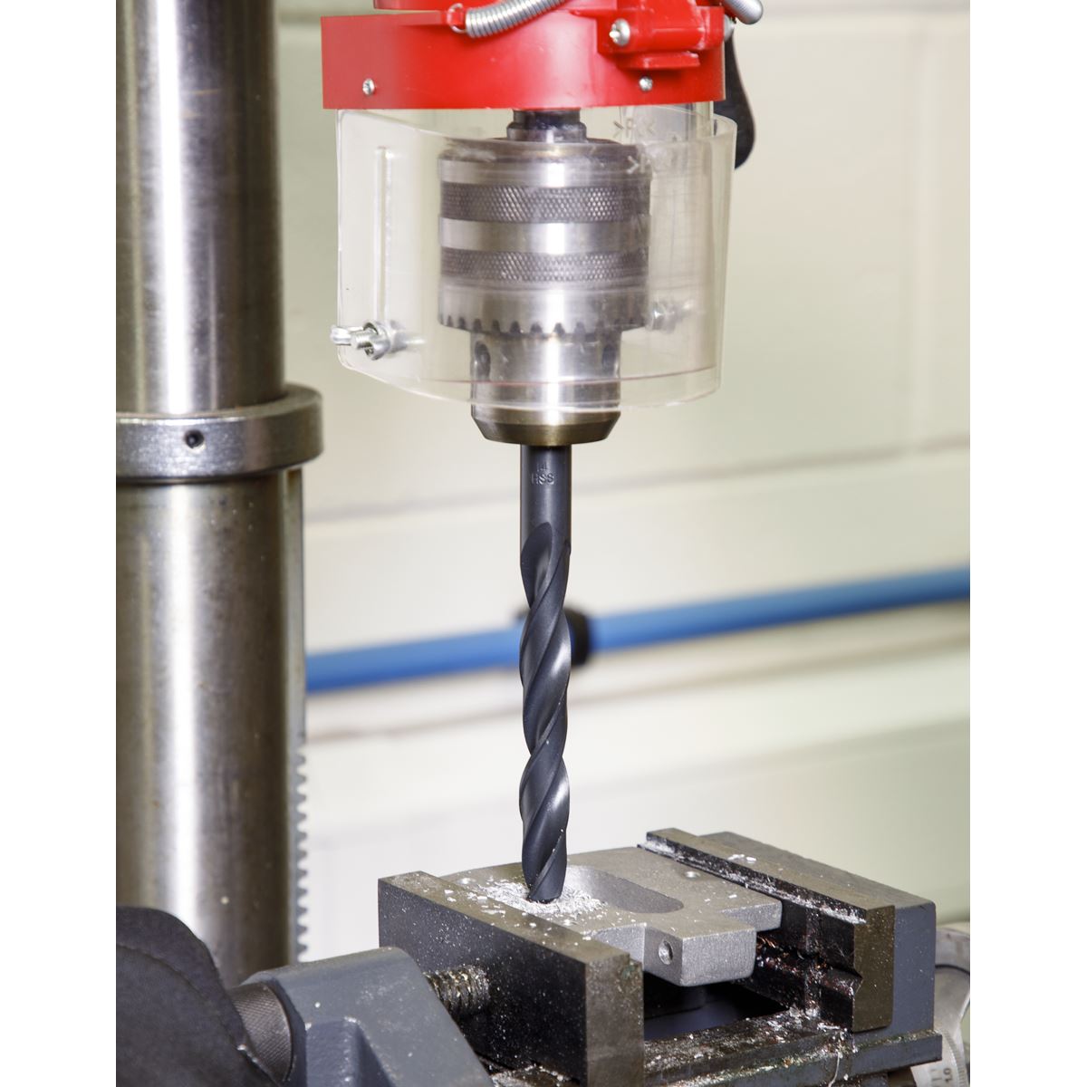 HSS roll forged blacksmiths drill bit with a reduced shank to enable use with a standard chuck. Drill has a black oxide finish and 110mm Working length. Supplied in a plastic wallet.