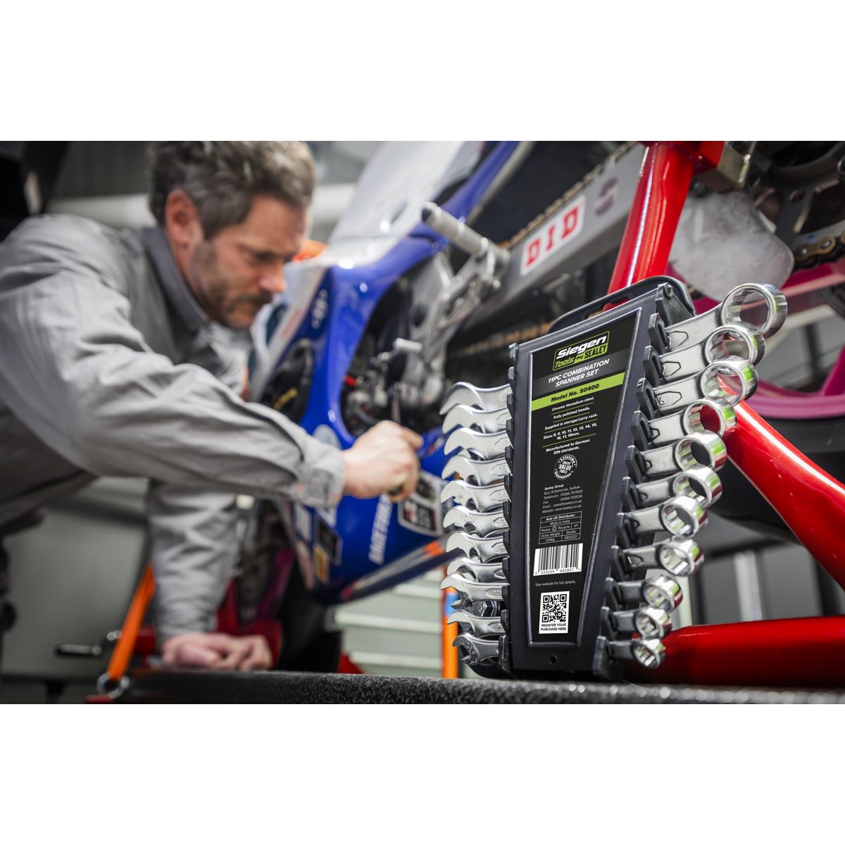 Manufactured from Chrome Vanadium steel. Fully polished heads. Made to DIN standard. Supplied in storage/carry rack.
