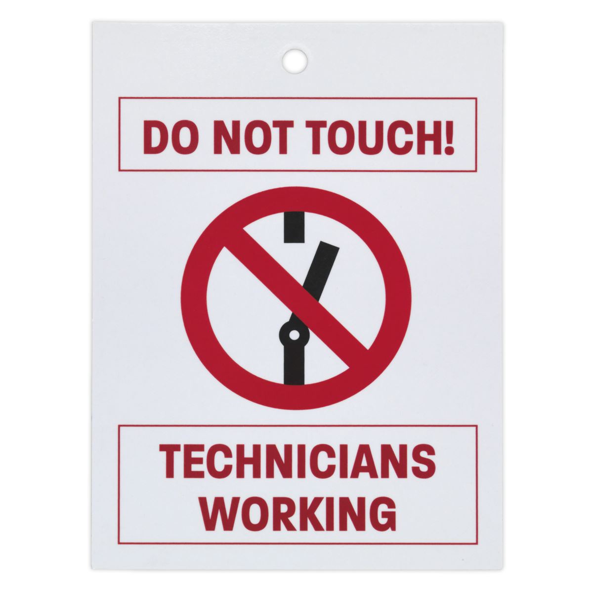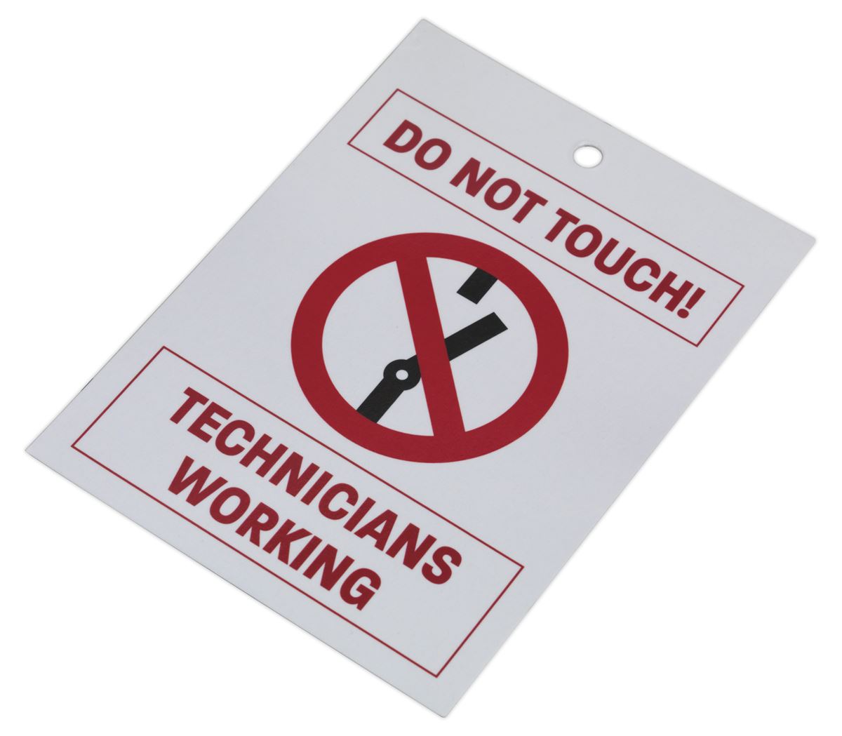 Safety warning tag for placing with hybrid or electric vehicle keys whilst service or repair operations are being carried out. It is essential that the vehicle keys are kept secure and away from the vehicle during service or repair work. 80 x 110mm 400gsm paper with gloss finish.