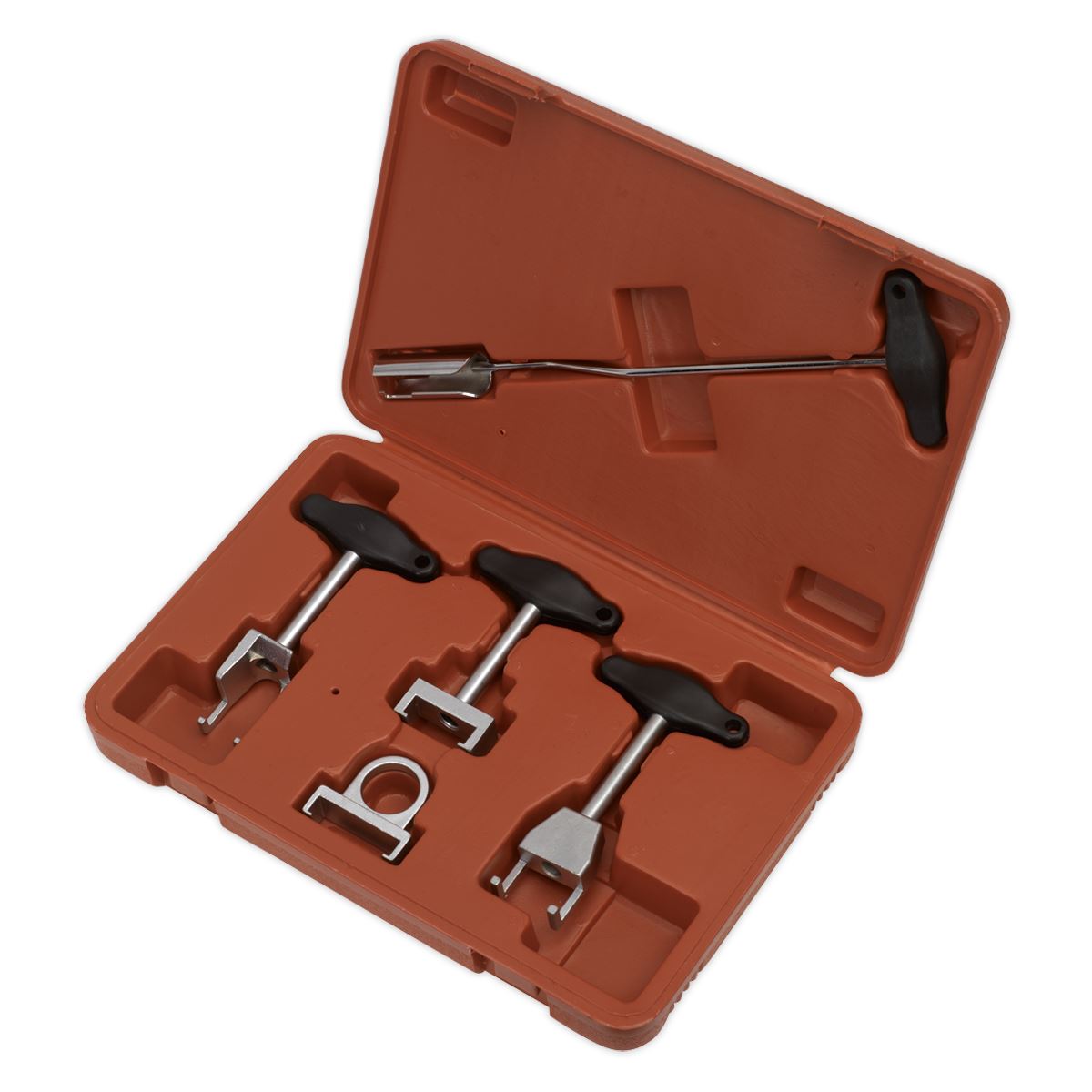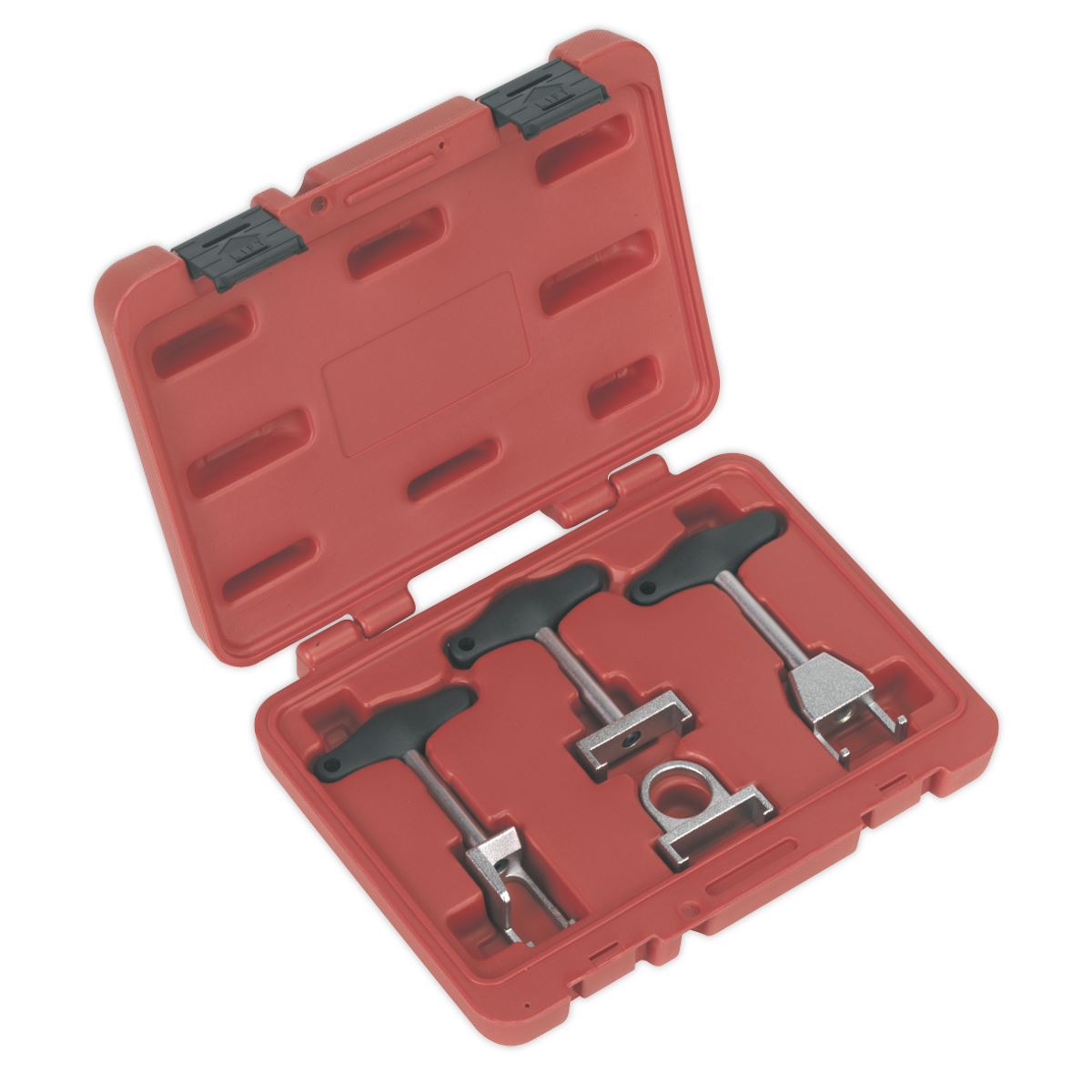 Suitable for installation/removal of ignition coils and separating the HT leads from deep-seated spark plugs on VAG vehicles. Long shafts with composite T-style handle for added control and stability. Prevents damage to ignition coils whilst allowing faster removal. Supplied in storage case.