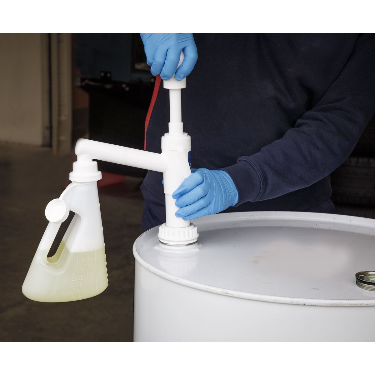 Made from high quality polypropylene and LDPE plastic, pump has a broad chemical resistance, including mild solvents. Acid resistant, caustic resistant, and resistant to chlorine based chemicals. Pumps soaps, cleaning chemicals, sanitisers, antifreeze, AdBlue®, battery acid and more. Supplied with adjustable 2"BSP adaptor and dip tube suitable for 205L drums. Features lift action operation which pumps on the way up as well as the down push, enabling a larger delivery per stroke. Supplied with a lock-on measuring bottle for effective pumping with no leaks or spillages. Pump also features a locking strap to prevent accidental operation whilst not in use.