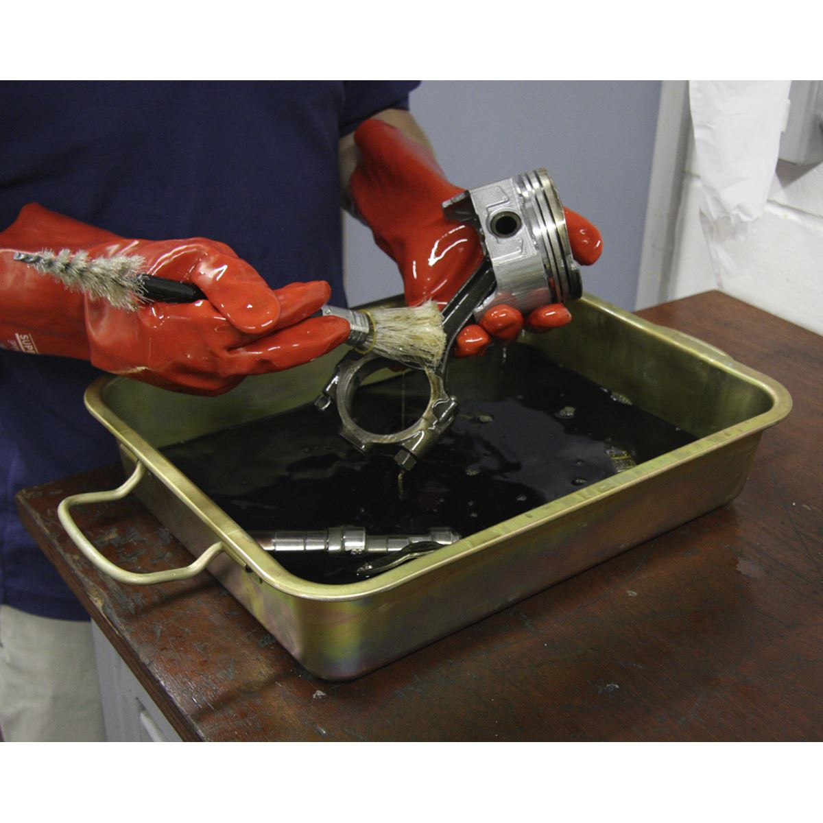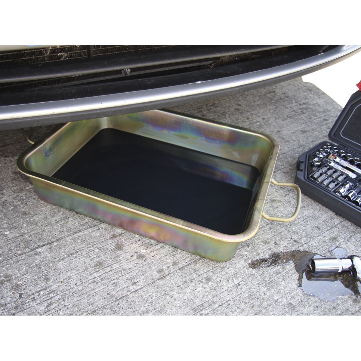 Not only suitable for oil changes, this zinc plated pan is ideal for cleaning and storing vehicle components.