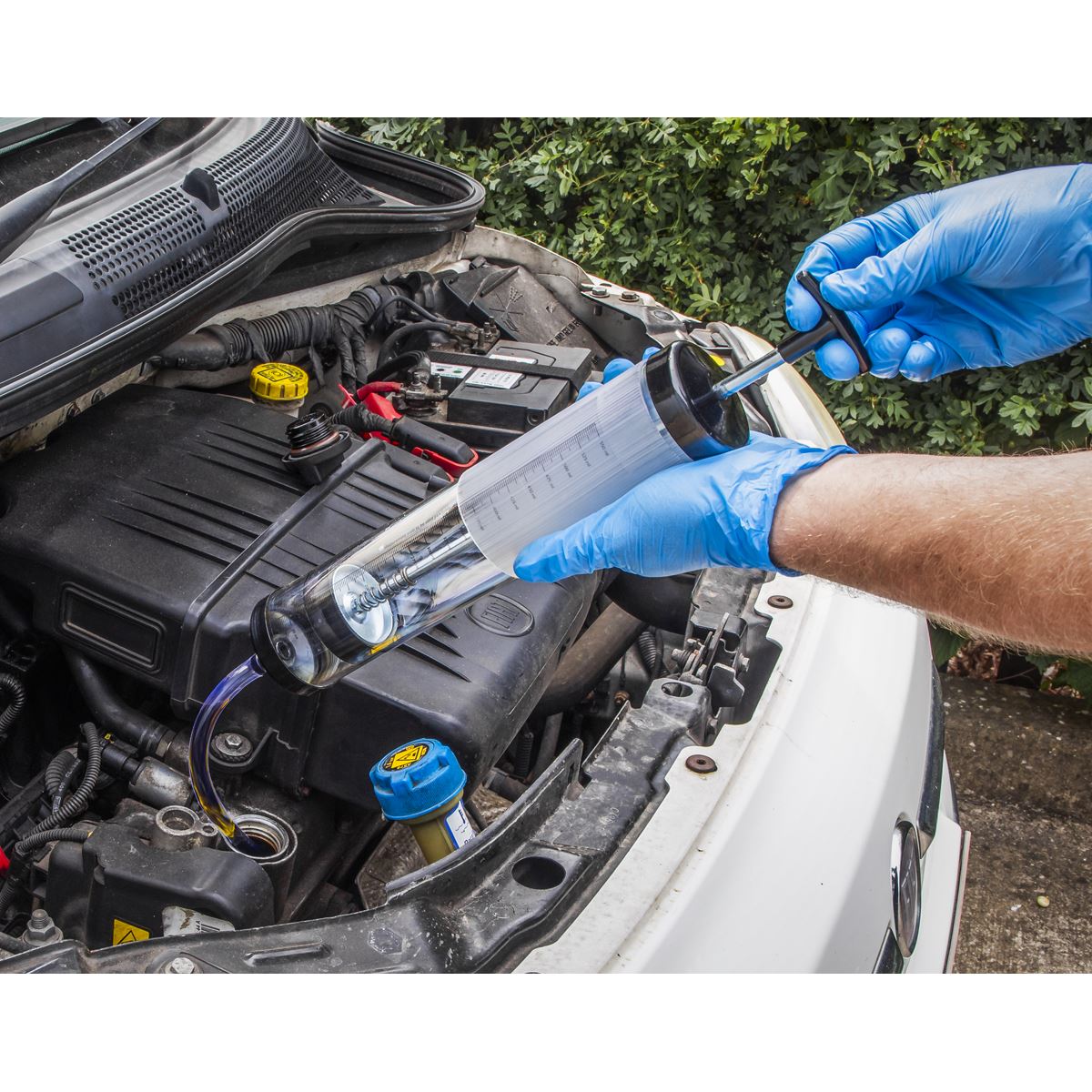 Single action plastic bodied suction tube with T-bar type plunger. Ideal for use on vehicles and machinery for removing oil from gearboxes and differentials. Translucent body allows easy inspection of oils and fluids. Supplied with 300mm transparent flexible suction hose with 10mm bore.