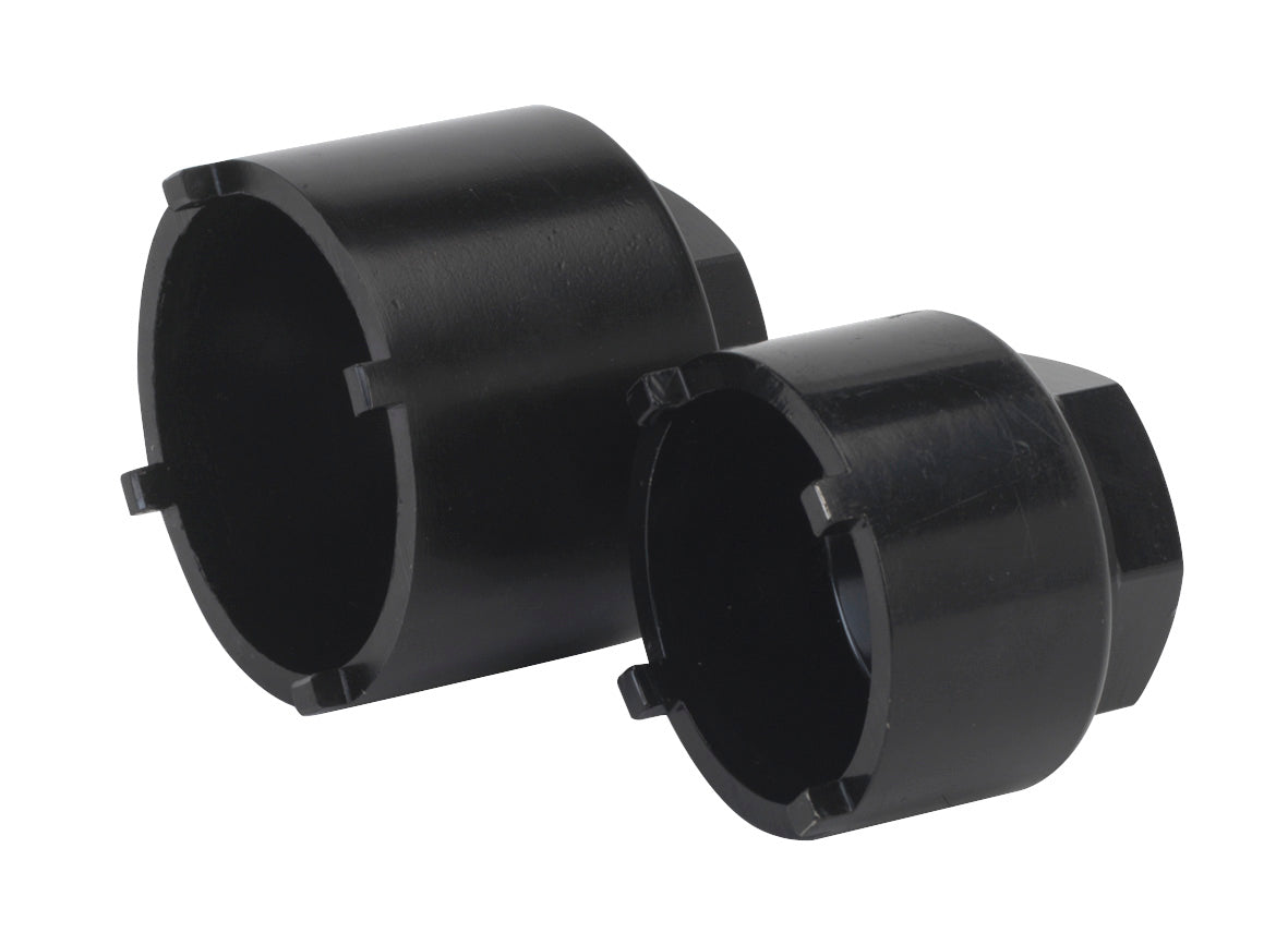 Set of two heat treated alloy steel sockets. Suitable for removal of OEM and aftermarket lower ball joints on Citroen and Peugeot vehicles. Supplied in storage case.