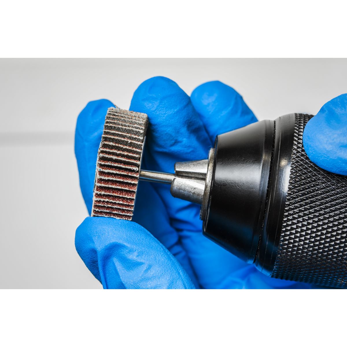 Ideal for surface treatment, smoothing corners and deburring in small, confined areas. Set includes 60Grit (x4) and 80Grit (x3) abrasive flap wheels. Compatible for use with Sealey and most other popular brands of drills and die grinders.