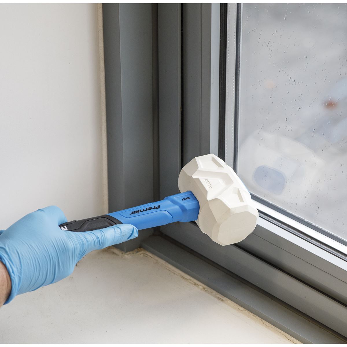 Non-marking white rubber head. Fibreglass shaft with graphite core for improved strength and durability. Textured rubber grip for secure handling.