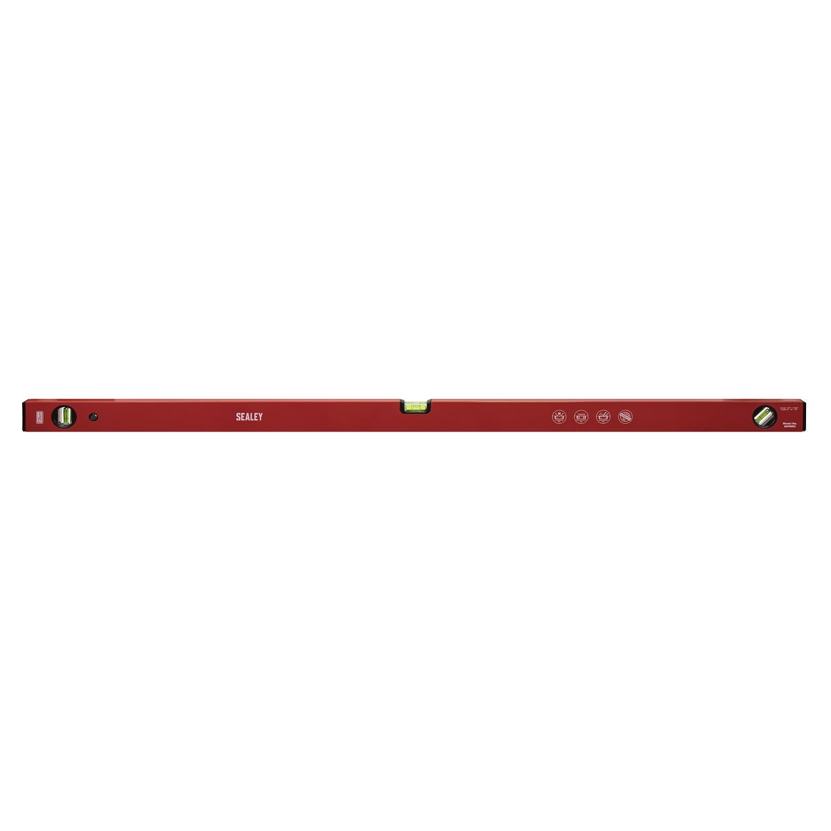 Extruded 0.9mm aluminium box section level. Powder coated for corrosion resistance. Accuracy 1mm in 1m (0.057). Model includes UV resistant and shockproof vials, one horizontal with side view, one vertical and one 45. Base with precision milled face.