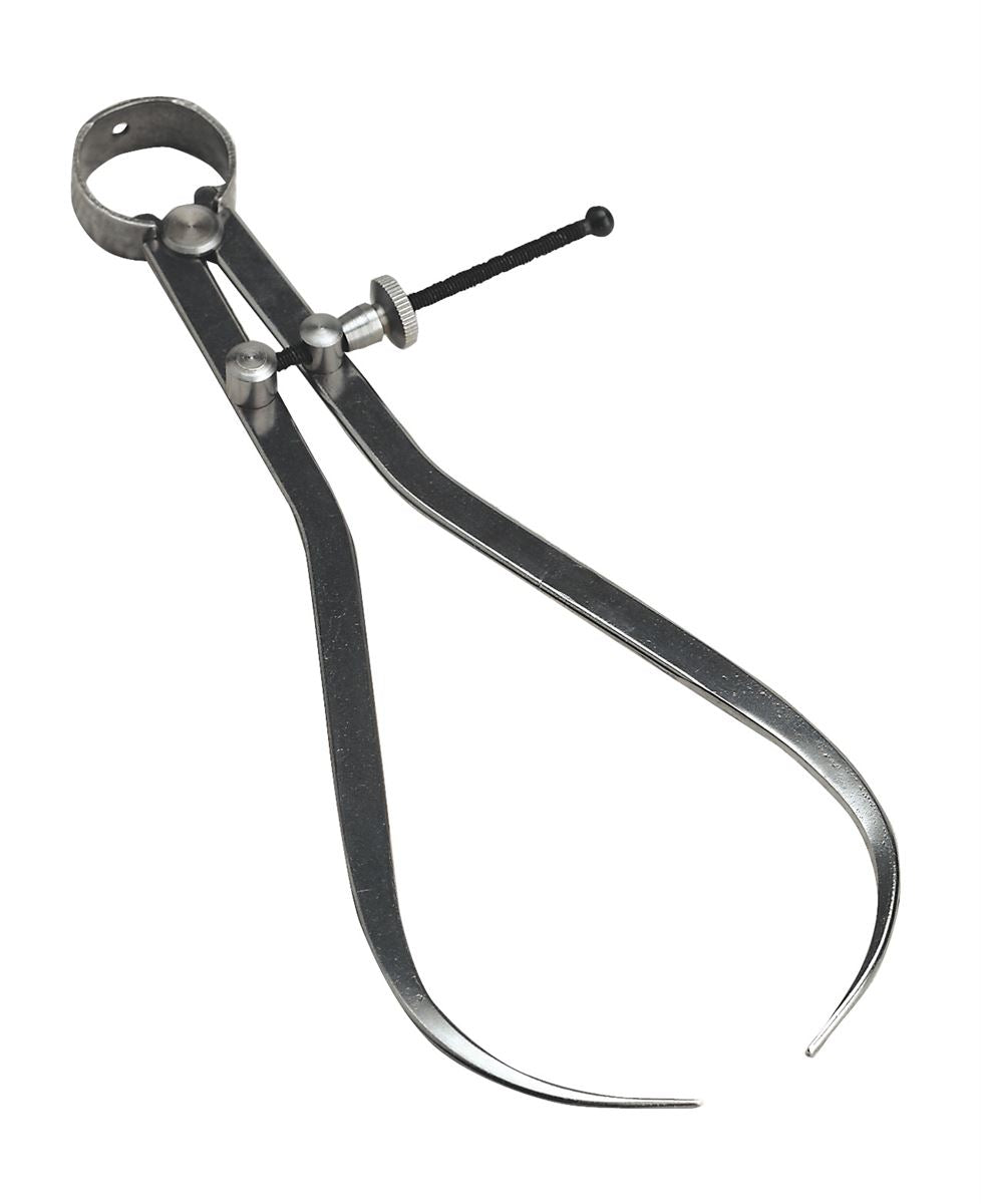 For measuring opposite sides of an object for transfer to rule or micrometer. Adjusting washer and nut allow for fast positive adjustment. Brushed metal finish.