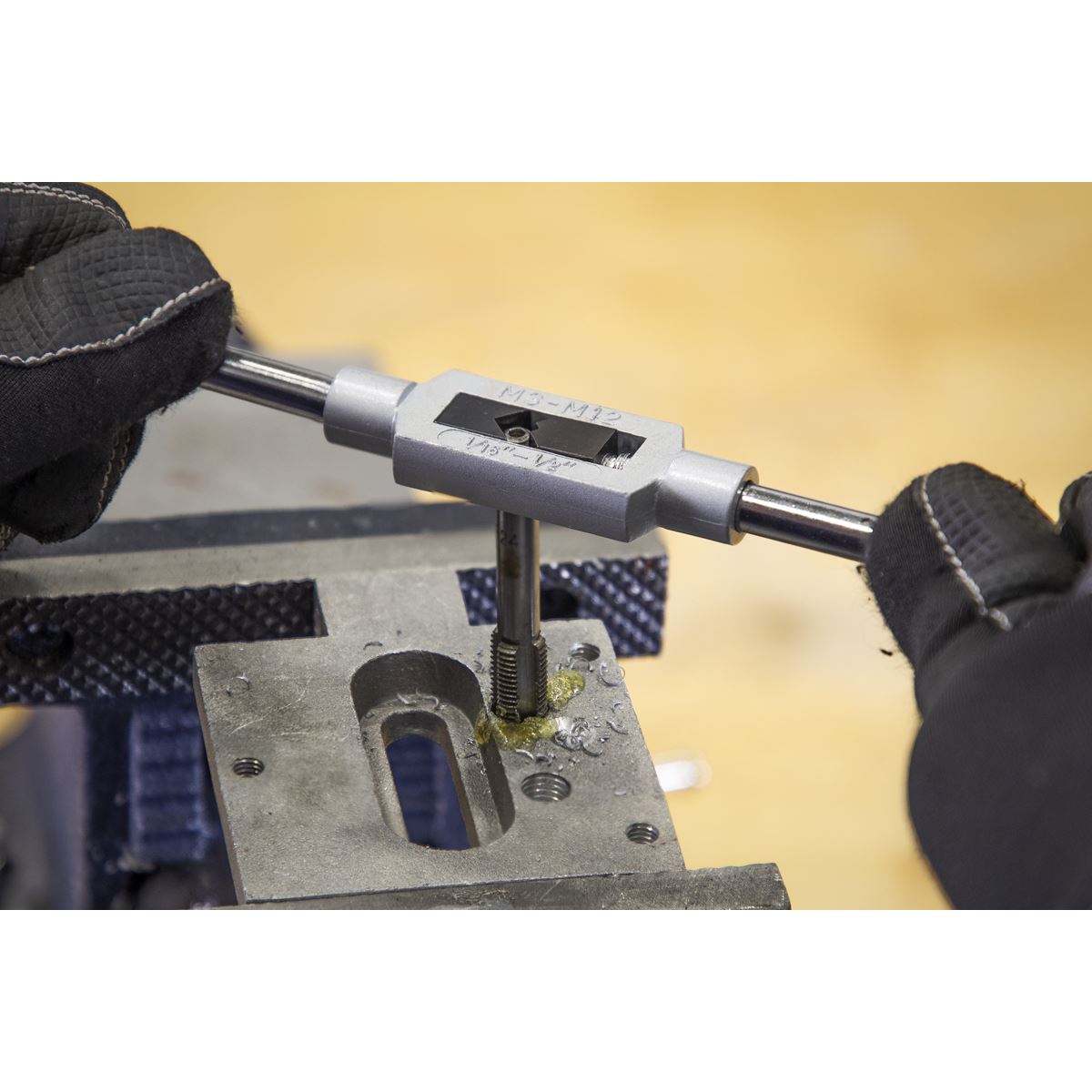 Precision machined, carbon steel taps and dies. Dies are split to allow the fine adjustment of core diameter. Set includes imperial coarse and fine sizes. Includes double-ended tap wrench and die holder with retention screw. Supplied in metal storage case.