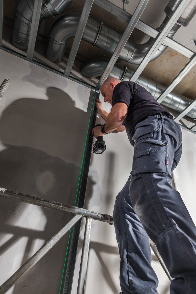 The Stabila LAX 300 G Cross Line Laser Level is the ideal partner for interior construction professionals who need accurate laser lines with optimum visibility. The innovative STABILA GREENBEAM technology provides razor-sharp, extremely bright laser lines. You can perform plumb-line and levelling work on the floor, wall and ceiling, all at the same time. The laser produces 1 horizontal line, 1 vertical line and plumb-line dots, upwards and downwards. The vertical line almost covers the entire room.