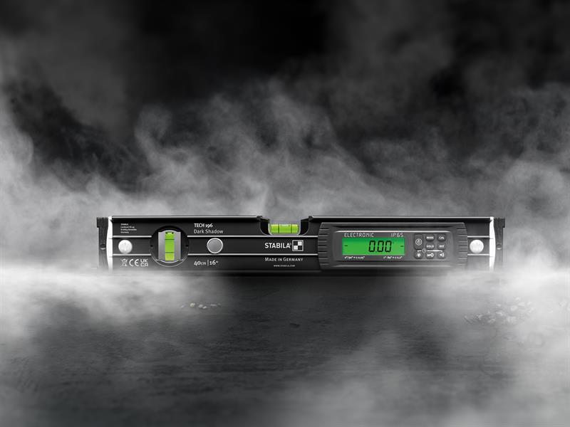 Limited Edition Stabila TECH Dark Shadow Digital Spirit Level. This limited edition model combines a classy appearance in an anthracite matt coating with high-quality Made in Germany technology. Digital measurements make work easier and save time. Measure inclines and slopes easily and precisely using two digital displays which can be illuminated. Put components in the right position with ease using the acoustic guidance. An indispensable tool both water and dustproof in accordance with IP 65 and will take your work to the next level.