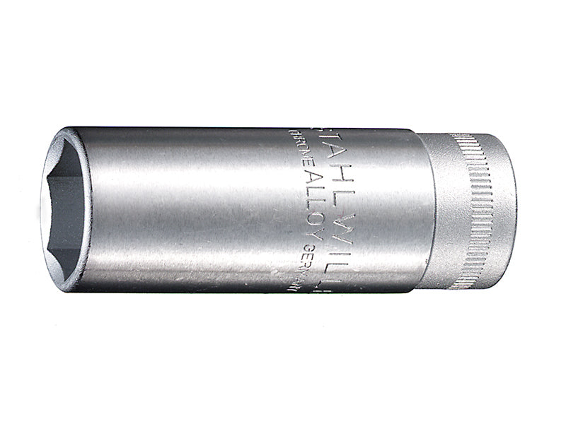 Stahlwille Extra Deep Spark Plug Socket with 3/8in Drive and rubber insert. Made from HPQ® high-performance quality steel and chrome plated. They have an extremely high load capacity with exceptionally thin rings and walls. Equipped with anti-slip drive to permit high transmission of forces to the lands of the nuts and bolts without damaging them.