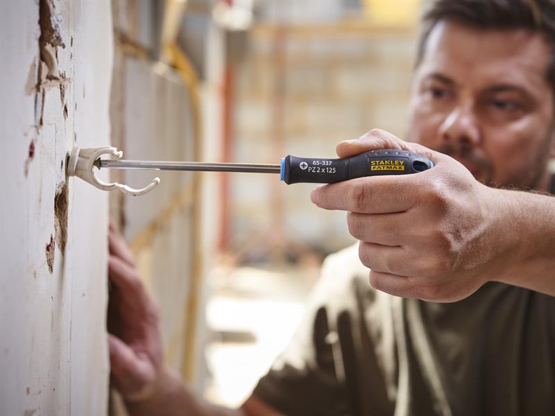 The Stanley FatMax® Pozidriv tip screwdrivers have a chrome vanadium steel bar which allows high torque and reduces the risk of tip breakage, and the handle is moulded directly to the shaft for a virtually unbreakable bond which gives long life and durability.