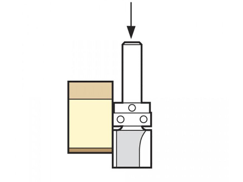 Trend Bearing Guided Template Profile Cutter for rebating and trimming edges. Extra care must be taken to avoid breakage of the cutter. Two flute carbide TCT tips for clean, professional finish on timber lippings, plastic laminates and veneers.