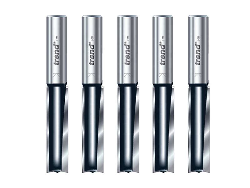 Trend Trade range two flute router cutters have extra long shanks and are designed to meet the demanding needs of the professional trademen. They have a 2mm micrograin Tungsten Carbide tips for cutting the most abrasive materials to give extra long life.